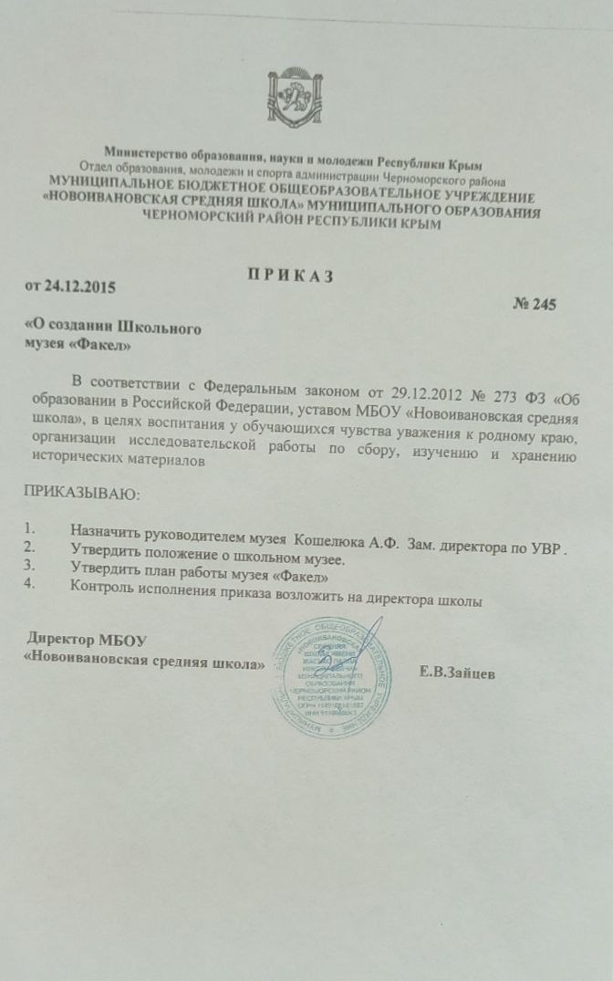 Муниципальное бюджетное общеобразовательное учреждение «Новоивановская средняя школа имени Масько Павла Николаевича» муниципального образования Черноморский район Республики Крым